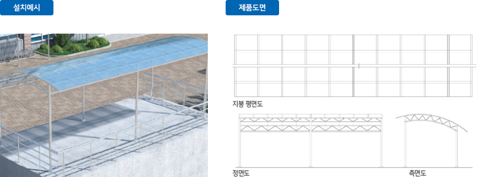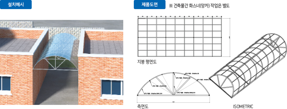 반 아치 타입, 건축물 측면 설치형 (단독설치 불가),